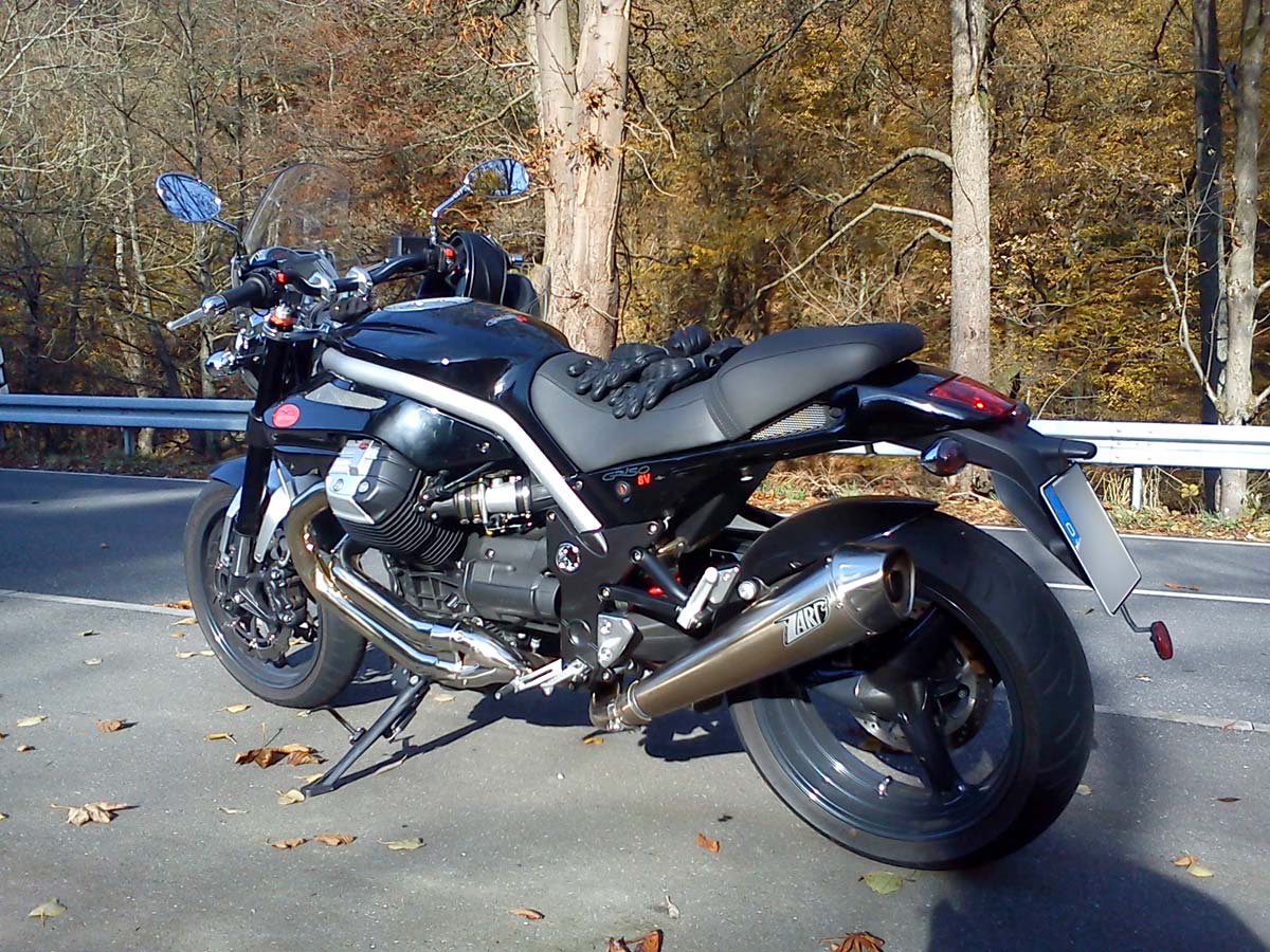 Im Oktober hatte die Guzzi schon 10.000 km auf der Uhr und da sie noch Werks-Garantie hat, möchte ich sie scheckheftgepflegt halten. Also bei Motorrad Moll zur Inspektion angemeldet. Die haben mir für die paar Tage (musste ein Ersatzteil nachbestellt werden) netterweise eine Ducati Monster 1100 EVO geliehen. Hammergerät mit ABS. Traktionskontrolle und Anti-Hopping-Kupplung. Fährt sich genial, gerade auf nassen Eifelstrassen hat sich die Traktionskontrolle toll angefühlt... Naja, war natürlich wieder zu schnell unterwegs, aber hätte nicht gedacht dass moderne Technik soviel Spass macht. Leider hat nach ein paar Tagen der Ölfilter geleckt, aber gut, eine italienische Diva halt.