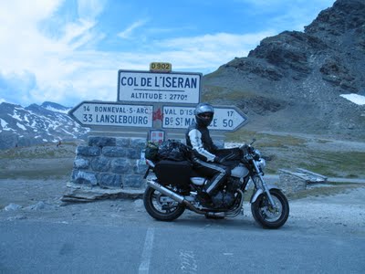 Elsaß (z.B. Col de la Schlucht) - St. Gotthard, der Alte Pass - Sustenpass, Furkapass, in die Schwyz nach Brig, ein Stückchen Autobahn bis Luzern (Vierwaldstätter See) - Weiter nach Basel - Über einige Pässe zum Lago Maggiore - Lago Lugano - Lago di Como mit Lecco, Como, alles schöne Städte - Über Turin und Asti nach Savona, Mittelmeerküste - Da ein Stück die Küstenstraße lang (es ist die Hölle bei 30 Grad zur Ferienzeit) - Durch Monaco und bis Nizza, dort wieder über Kleinststraßen in die Berge - Und über Barcelonette die Königinnen der Pässe abfahren: Col D'Iseran im Val D'Isere, Col De Galibier und noch einige ander kleinere - Dann bis zum Genfer See - Lausanne - Genf (Schöne Stadt!) einmal rum, Zurück über Landstraßen in Frankreich bis wieder in's Elsaß und dann an einem Tag 700 km mit etwa der Hälfte Autobahn durch Frankreich, Luxemburg, nach Hause in die Eifel.