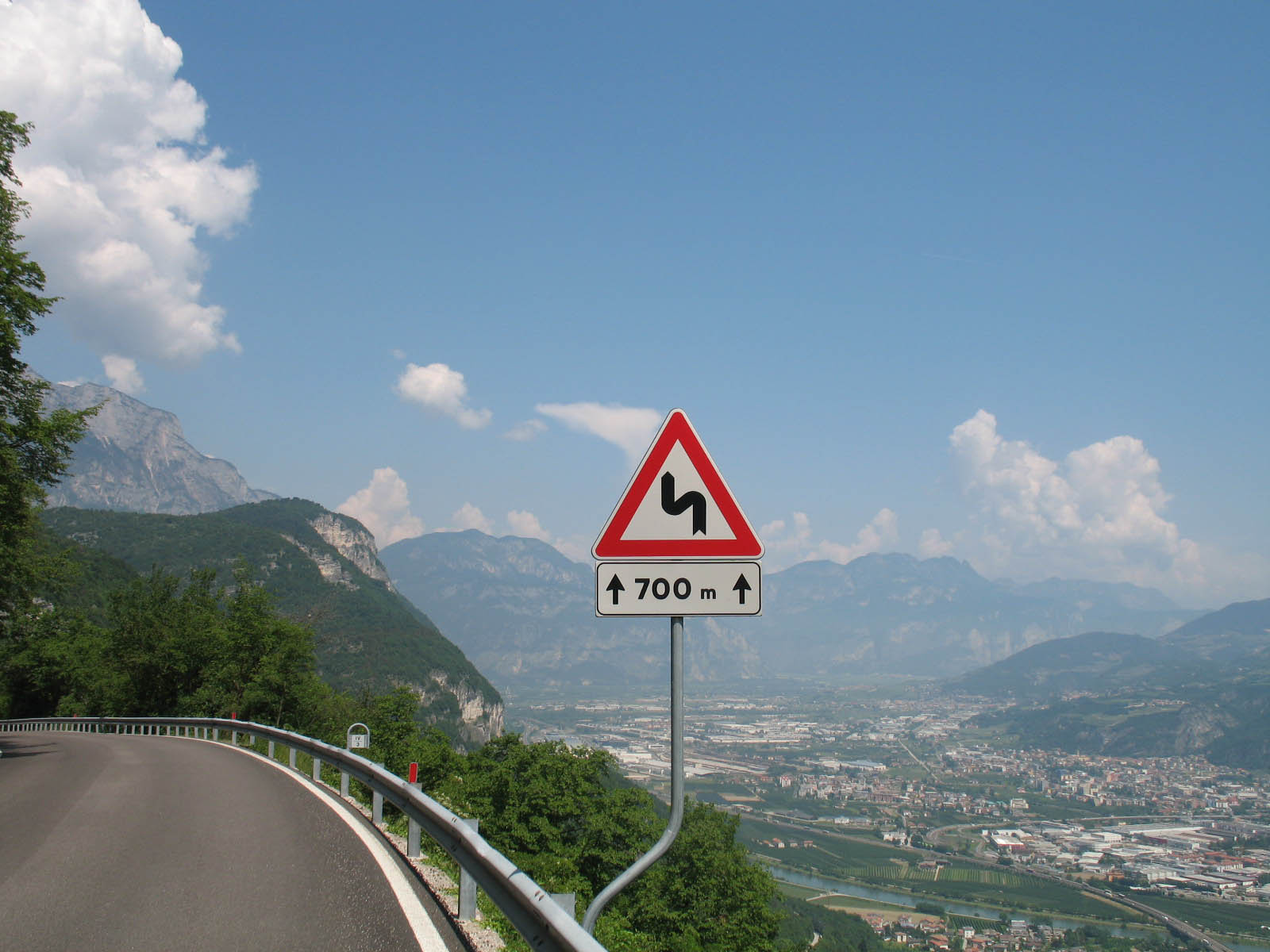 Dann zurück über Trento, die Bergpässe zurück nach Riva del Garda sind der absolute Knaller für Kurvenfans - den ganzen Tag Kurven, diese Schilderkombi findet man ununterbrochen: