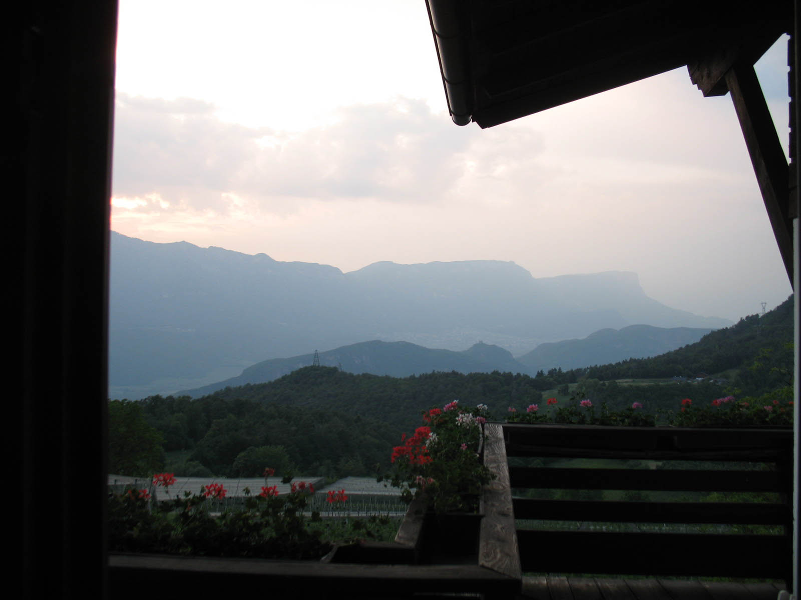 5. Tag: Rovereto, Mezzolombardo, Tuenno, Cles, Rchtg. Bozen über Mendelpass, Kaltern an der Weinstrasse sollt man über diesen Pass anfahren. Dann noch nach Meran und über Jaufenpass (Timmelsjoch war noch gesperrt), durch das Sarntal wieder nach Süden und nach Osten in die Dolomiten abgebogen. Dann Richtung Südosten Cavalese, Übernachtung auf einer Apfelfarm Nähe Nova Levante südlich von Meran und Brixen, mit Blick auf die Dolomitengipfel.